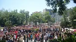 - ↑ a b c Erneut Gewalt bei Protesten in Istanbul - Polizei setzte Tränengas und Wasserwerfer ein, Neues Deutschland, 13. September 2013.
