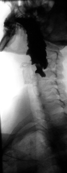 - Im Stadium 4 komprimiert das Divertikel die Speiseröhre und behindert sichtbar dessen Kontrastmittelpassage.[3]