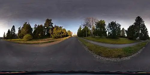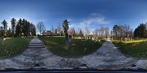 In der Nähe des Haupteingangs des Friedhofs befindet sich ein Baldachin, der den Eingangsbereich aufwerten sollte.