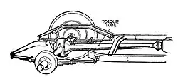 hinter Starrachse („Faustachse“) eine schiebende V-förmige Deichsel mit zentralem Kugelgelenk an der Spitze