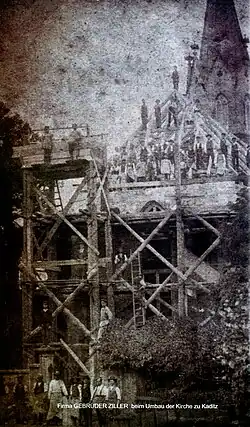 Gottlob Adam Ziller, der 1817 geborene älteste Sohn des Hofbesitzers Johann Gottlob in Oberebersbach, heiratete in Radebeul die Witwe eines Maurermeisters. Vermutlich ist er es, der in den Bauakten zum Kirchenbau in Lomnitz durch seinen Vetter Christian Gottlieb als der „Ziller aus Ebersbach“ erwähnt wird.[7]