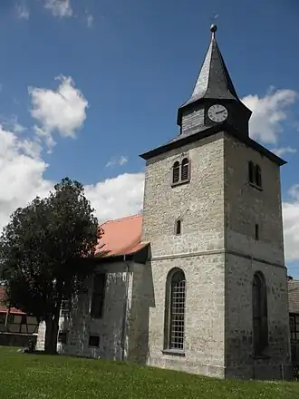 Die romanische Dorfkirche Christi Himmelfahrt erhielt im 13./14. Jahrhundert einen Chorturm, weitere bauliche Ergänzungen erfolgten um 1500. Nach einem Brand erhielt sie Ende des 18. Jahrhunderts ein Mansarddach.