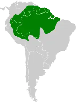 Die Art kommt in Nordbolivien, Brasilien, Ecuador, Französisch-Guayana, Guyana, Südostkolumbien, Ostperu, Suriname und Venezuela vor.