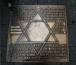 Unter anderem in der Kölner Richmodisstraße, einer Seitenstraße des Kölner Neumarktes, erinnert eine Gedenkplatte an die Entstehung der Zionistischen Vereinigung für Deutschland in Köln.