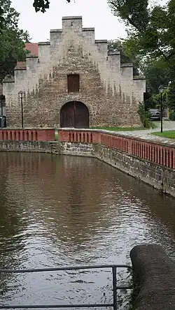 - ↑ Denkmale in Sachsen-Anhalt. Hermann Böhlaus Nachfolger, Weimar 1983, S. 466, 481.