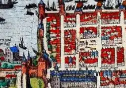 Plan von Stettin von Hogenberg 1588, Korn- vnd futter-hall, links oben (Norden ist links)