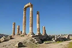 Der römische Herkulestempel entstand von 161 v. Chr. bis 166 n. Chr. Nachdem man die Reste einer über 13 Meter[13] hohen Kolossalstatue entdeckt hatte, schrieb man den Tempel Herkules zu. Der Tempel war ursprünglich von mehreren Säulenhallen umgeben und stand mitten in dem heiligen Bezirk, dem Temenos. Er befand sich auf einem Steinpodium und konnte dadurch von der Stadt aus gesehen werden. Man nimmt an, dass der Tempel über den Resten eines älteren Tempels, der Milkom geweiht war, entstand. An der Fassade befand sich ursprüngliche eine Inschrift, nach deren Inhalt er Mark Aurel und Lucius Verus gewidmet war.[1][14]