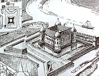 ![]() Die Burg Eichelsheim nach einem alten Stich, um 1600 | ||