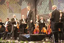 Zubin Mehta (* 29. April 1936 in Bombay, heute Mumbai) ist ein indischer Dirigent. Der vielseitig und international tätige Künstler war u. a. von 1962 bis 1978 Chefdirigent des Los Angeles Philharmonic, von 1978 bis 1991 Chefdirigent der New Yorker Philharmoniker, von 1998 bis 2006 Generalmusikdirektor der Bayerischen Staatsoper und ist seit 2014 Ehrendirigent der Staatskapelle Berlin. Von 1977 bis 2019 war er zudem Chefdirigent des Israel Philharmonic Orchestra.[1]