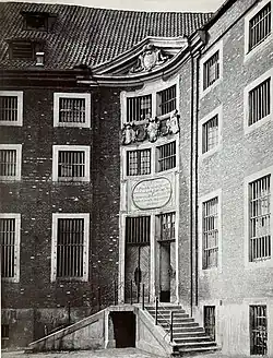(deutsch: „Das gegenwärtige Arbeitshaus wurde mit Gottes Hilfe auf Kosten der Ständeversammlung des Landes errichtet“.)[2]