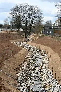 Es entstanden im Holozän zudem auch die heutigen Bachläufe und Talauen, die stets vor allem wegen des nacheiszeitlich von den Hängen gespülten Gerölls und Feinmaterials bei Hochwasser überschwemmt wurden und so etwa im Feuerbachtal, an dessen mittleren Lauf später das alte Zuffenhäuser Dorf lag und noch liegt (heute der sogenannte „Alte Flecken“), Auenablagerungen von bis zu 8 Meter Dicke aufhäuften. Das gesamte Gewässernetz ist dabei auf den Neckar ausgerichtet, und in den Feuerbach münden mehrere heute eingedolte Nebenbäche von Westen her, doch kaum einer von Osten. Der alte Ortskern liegt dabei auf einer von Hochwässern kaum beeinträchtigten, da nach Westen ansteigenden Fläche zwischen dem Schmerbach, der einst zwischen Böhringer und Colmarer Straße floss und einem Bach, der im Bereich Hördtstraße/Bönnigheimer und Beilsteiner Straße verlief. Dabei weist das Gewässernetz in Abhängigkeit vom Gesteinsuntergrund eine unterschiedliche Dichte auf, denn Muschelkalk lässt wie im Gäu durch seine zahlreichen Spalten eine Versickerung zu, die Ton- und Mergelschichten des Keupers hingegen kaum, so dass hier oberflächliche Abflüsse vorherrschen.