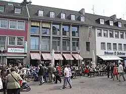 1417 waren die Besitzer des Hauses „Goissen zom Storrne und Magrit“. Demnach führte das Haus schon Anno 1417 den Namen „Zum Stör“. Der „Stör“ war eine Herberge und Gaststätte und befand sich 1635 im Besitz der Margaretha Meißheim. Sie verkaufte am 28. November 1635 in einem festen Erbkauf dem Johann Huppertz und der Katarina Mevies und deren Erben ihre Zum Steuren (Zum Stör) genannte Behausung auf dem Kornmarkt (heute Marktplatz).