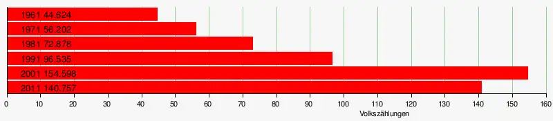 | Volkszählung 1961 | Volkszählung 1971 | Volkszählung 1981 | Volkszählung 1991 | Volkszählung 2001 | Volkszählung 2011 | |||||||