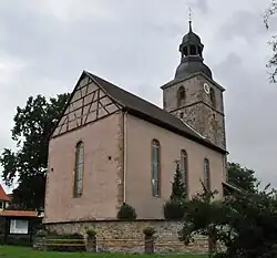 Vermutlich ist die Altarnische der heutigen Kirche in der Ortsmitte unter dem alten Wehrturm die frühere Kapelle Zum Hl. Christophorus: Spätgotisches Maßwerk, freigelegte geistliche Wandmalereien und ein Taufstein mit der Jahreszahl 1546 könnten hierfür Indizien sein. 1720 baute man an den vorhandenen Kirchturm das Kirchenschiff. Das Ensemble befindet sich innerhalb der Mauern einer ehemaligen Kirchenburg. Ein noch gut erhaltener Teil des Wehrgrabens zeugt von der Wehranlage im Mittelpunkt des Dorfes.[1] Die Kirche erhielt den Namen Zur Hilfe Gottes. Derzeit (2010) ist die Kirche ohne Patrozinium.