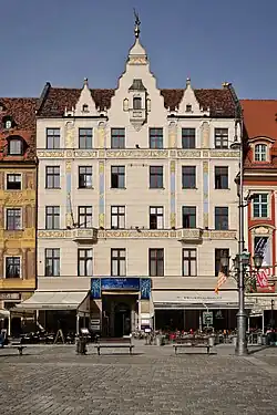 Im 16. Jahrhundert wurde das Gebäude als Gasthof genutzt. Die heutige Fassade im Stil der Neorenaissance stammt aus dem Jahr 1902. Im Gebäude befindet sich ein Durchgang zur dahinter liegenden Straße Ulica Kielbasnice. 1997 wurde das Gebäude aufwändig saniert, wobei der Durchgang zu Büro- und Ladenräumen umgebaut und mit einem gläsernen Dach versehen wurde. Im Erdgeschoss befindet sich das Café Coffee Planet.