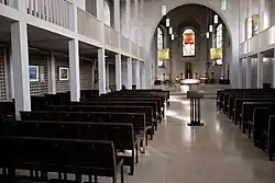 Der Innenraum wurde nach dem Zweiten Weltkrieg als Betonfachwerkbau mit durchlaufenden Emporen erneuert und bildet mit neuzeitlicher schlichter Gestaltung einen starken Kontrast zum barocken Äußeren.