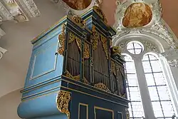 Die Barockorgel des Kaufbeurer Orgelbauers Matthias Petz wurde 1694 erbaut. Sie verfügt über 9 Register auf einem Manual und Pedal.[5] Die Disposition lautet:[6]