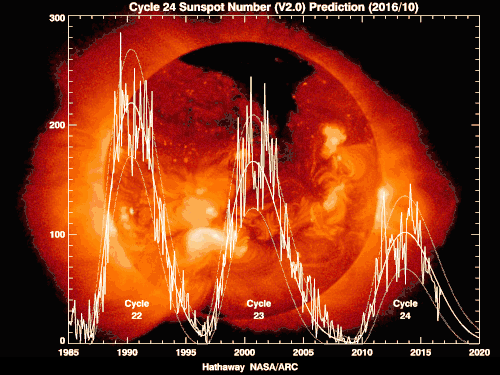 - Solar Cycle Progression and Forecast des NASA Space Environments Teams, mit einer aktuellen Prognose zum 25. Sonnenfleckenzyklus