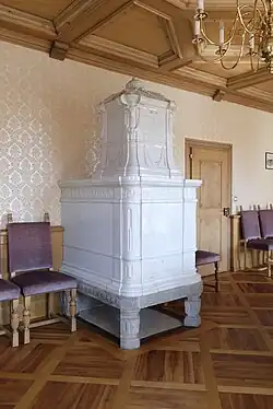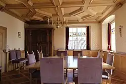 Das repräsentative und auffällige Steinhaus mitten im Dorfzentrum erfuhr im Laufe seiner langen Geschichte einige Veränderungen. Die Proportionen des Hauses entsprechen ursprünglich gotischen Vorgaben. 1776 wurden die Fensterformen verändert und das Wandtäfer ausgewechselt. Nach 1800 wurde ein Anbau für ein neues Treppenhaus erstellt, neue Türen aus Nussbaumholz eingebaut und im oberen Saal ein neuer Ofen im Louis-seize-Stil eingerichtet. Die originale Kassettendecke wird der Renaissance zugeordnet, stammt also aus der Bauzeit im Jahr 1574.[2]