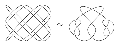 Finde ein Rechteck in der Ebene mit zwei gegenüberliegenden, von der Orientierung passenden, Kanten auf jeweils einem Knotendiagramm, das ansonsten disjunkt zu beiden Knotendiagrammen ist. -