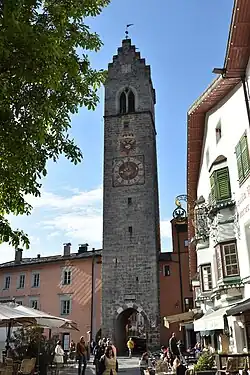 - ↑ Ende der Wiederherstellung des Stadtthurmes. In: Bozner Zeitung, 2. November 1868, S. 3 (online bei ANNO).