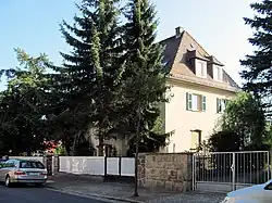 Das Zweifamilienhaus für den Radebeuler Kaufmann Karl Hebenstreit liegt in der Goethestraße 37 im Ursprungsstadtteil der sächsischen Stadt Radebeul. Das mit seiner Einfriedung unter Denkmalschutz[1] stehende Gebäude wurde 1938 von dem Radebeuler Architekten Albert Patitz entworfen. Der Entwurf ähnelt dem etwa zeitgleich vom selben Architekten entworfenen Zweifamilienhaus Heinrich Wentzel.