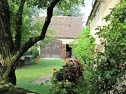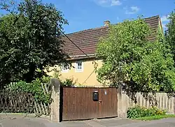 Das ehemalige Wohnstallhaus und die Scheune des Zweiseithofes stehen gemeinsam unter Denkmalschutz.[1] Das kleine zweigeschossige Wohnstallhaus, unten massiv und im Obergeschoss mit Fachwerk, ist schlicht verputzt und hat ein ziegelgedecktes Satteldach. Das Gebäude ist giebelständig ausgerichtet und liegt vorn an der Straße.