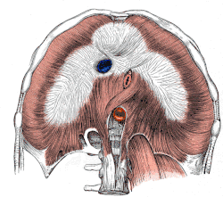 Der Lendenteil des Zwerchfells unterstützt als „äußerer Schließmuskel“ den unteren Speiseröhrenschließmuskel, einen komplexen Verschlussmechanismus am Übergang von der Speiseröhre zum Magen. Die Kontraktion des Zwerchfells führt durch eine Verengung des Speiseröhrenschlitzes zu einem Druckanstieg im Speiseröhrenschließmuskel mit jeder Einatmung.