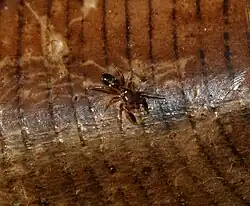 Zwergameisenspringer sind kleine Springspinnen (Salticidae) mit einer Körperlänge von 2,2 bis 4,8 Millimetern.[1] Typisch ist für diese Spinnen der langgestreckte, schillernde Körper, wodurch das ameisenähnliche Erscheinungsbild ermöglicht wird.[2] Zwergameisenspringer sind gleichmäßig dunkel- bis hellbraun, die Beine blass gefärbt und haben pro- (vorne) und retrolateral (hinten seitlich) dunkle Streifen und verdunkelte Flächen.[1]