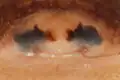 Frontale Detailansicht mit Größenvergleich (präpariertes Exemplar) -