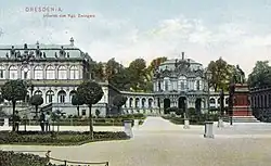 Der Zwinger ist ein höfischer Orangerie-, Fest- und Sammlungsbau in Dresden, der nach einem früheren Festungsteil benannt ist. Er wurde 1711 bis 1728 durch August den Starken von Matthäus Daniel Pöppelmann und Balthasar Permoser geschaffen. Mit dem Bau der Sempergalerie 1855 wandelte sich die offene Dreiflügelanlage zur geschlossenen Vierflügelanlage. Nach der Zerstörung 1945 wurde der Zwinger bis 1963 wiederaufgebaut und ist seitdem Sitz des Mathematisch-Physikalischen Salons und der Porzellansammlung der Staatlichen Kunstsammlungen Dresden. Er gehört zu den bekanntesten Sehenswürdigkeiten der Stadt und zu den bedeutendsten Bauwerken des Barock.[1]