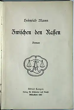 - Zwischen den Rassen. Ein Roman. Siebenter Band in: Heinrich Mann: Gesammelte Romane und Novellen. Kurt Wolff Verlag Leipzig. Das 26. bis 35. Tausend. Gedruckt bei Dr. Reinhold & Co, Leipzig, 577 Seiten.